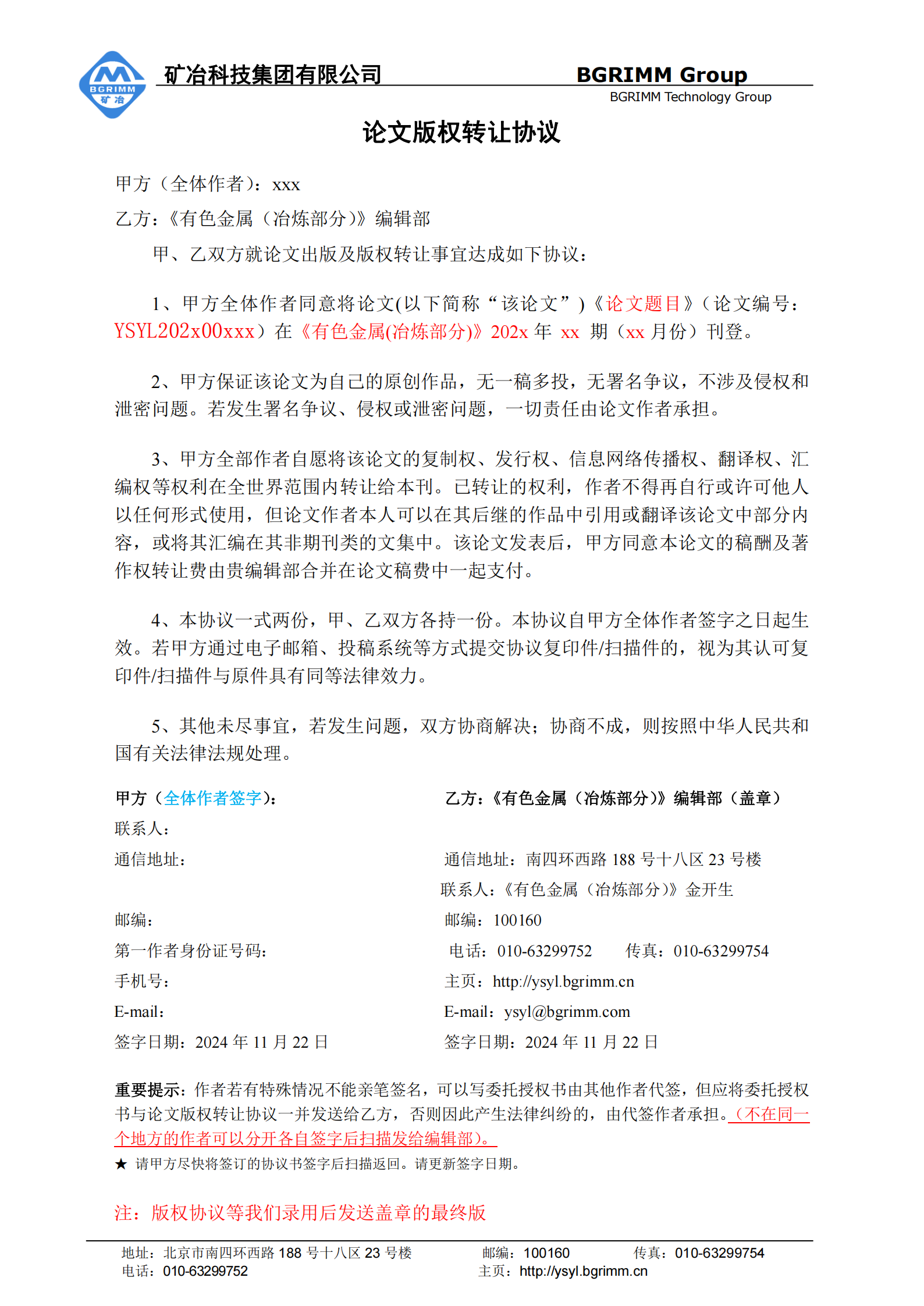 作者须知 论文模板 版权转让协议 版权声明和许可 期刊投稿 征稿简则